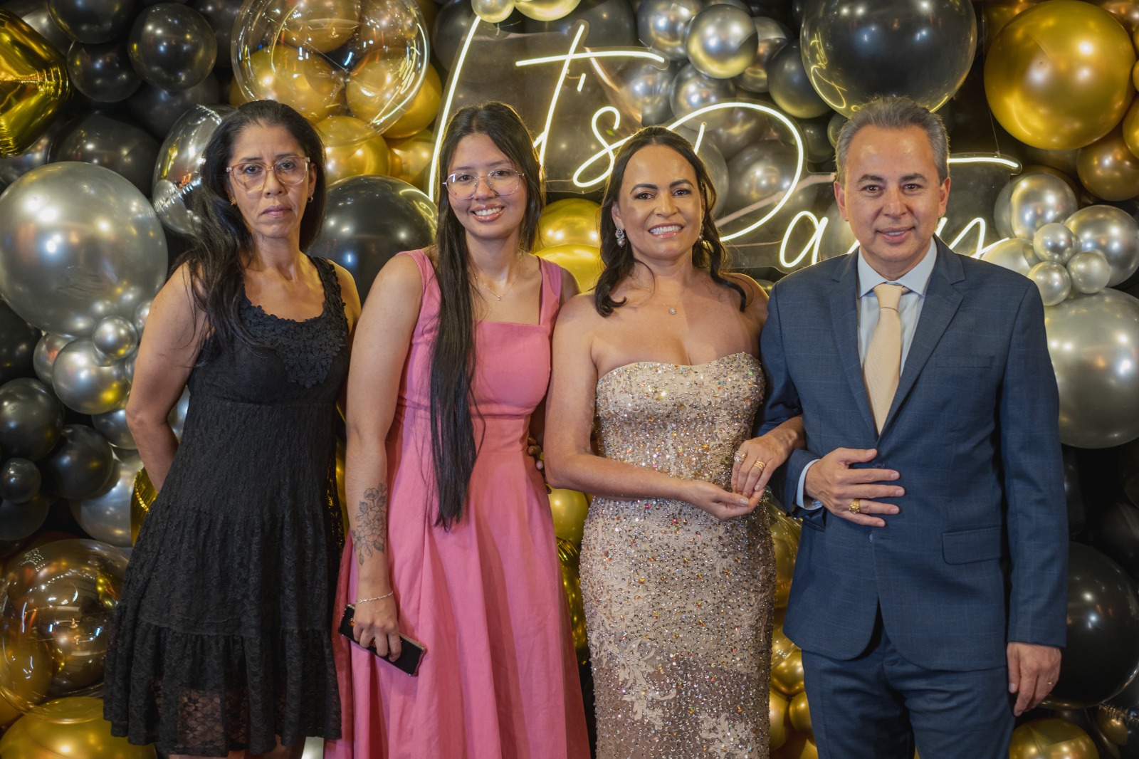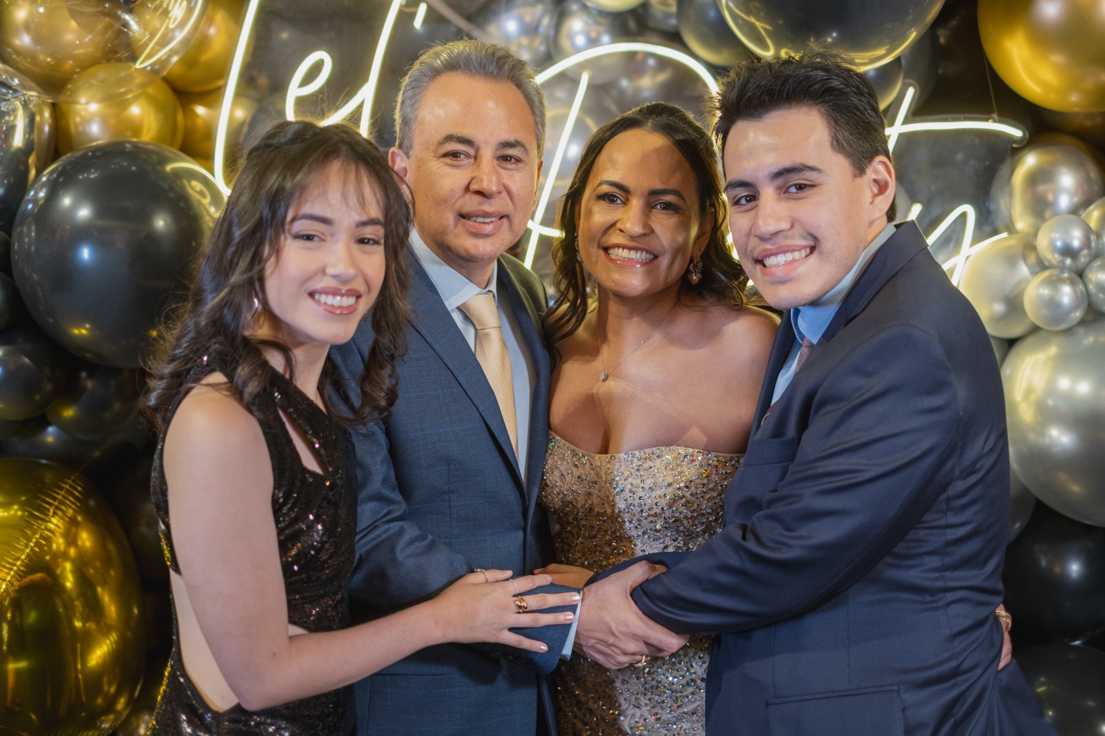 Na noite do último dia 6, a família Alem — o casal Sinedir Amorim e Ronald Alem, ao lado dos filhos Beatriz Amorim Kanashiro Alem e Kenzo Amorim Kanashiro Alem — recebeu os familiares e amigos para celebrar, em grande estilo, os 50 anos da matriarca Sinedir Amorim Alem.