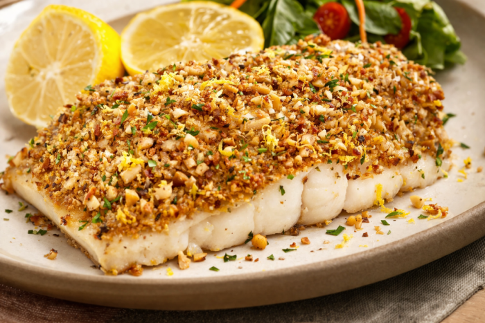 Tilápia em Crosta de Castanhas e Limão Siciliano. Foto: ChatGPT