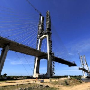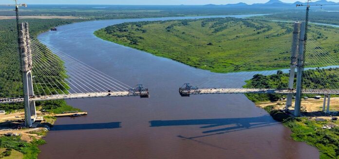 Quarenta e seis metros metros, ou cerca de um minuto andando sem pressa. É o que falta para concluir a ligação da ponte da rota Bioceânica, unindo Porto Murtinho no Mato Grosso do Sul a Carmelo Peralta, no Paraguai – o chamado “beijo”, no jargão da engenharia civil.
