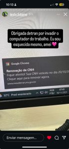 A notificação chegou no momento exato e a assistente social compartilhou a surpresa em suas redes sociais. Para Lesly, que depende de eficiência e agilidade, a modernização do Detran-MS foi a solução ideal. Ela elogiou o fato de não ter precisado sair da sua intensa rotina para resolver a burocracia. “Nós, trabalhadores, temos uma vida bem agitada, bem corrida, tudo programada. É muito difícil administrar tudo, principalmente a parte burocrática. Ter tecnologias, lembretes, um SMS, algo que nos alerte, é muito bom,” afirma Lesly.