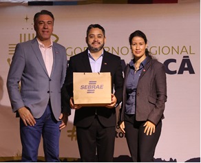 Saudações Protocolar do Governador Regional de Tarapacá Sr. José Miguel Carvajal à comissão do Sebrae/MS, representada pelo gerente de Relacionamento Rodrigo Maia e a analista-técnica Taíse Santos