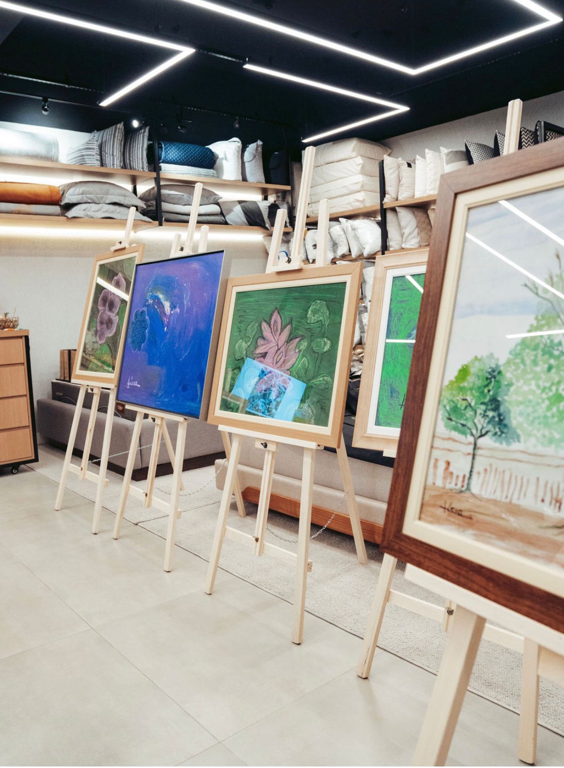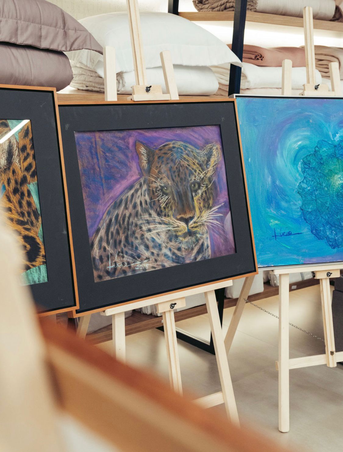 A carga chegou na loja Arquitetura do Sono, localizada na Av. Madre Benvenuta, na última segunda-feira, e na terça-feira, dia 5, foi inaugurada com grande sucesso a exposição “Do Pântano para a Ilha”, com a presença de vários arquitetos e arquitetas e entusiastas de arte catarinenses. As obras, permeadas por elementos de MS, como as flores de aguapé, as árvores do Cerrado, as onças, geraram muita curiosidade no público presente, que pôde dialogar com a artista para conhecer a história de cada trabalho. Para Lúcia, “foi acima de tudo um aprendizado e um prazer estar com seus trabalhos em Santa Catarina pela primeira vez”.