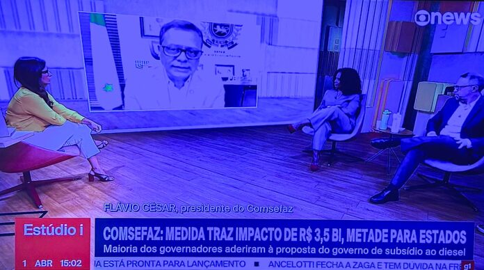 Durante entrevista na tarde desta quarta-feira (01) ao programa Estúdio i da Globo News, o secretário de Fazenda de Mato Grosso do Sul e presidente do Comsefaz (Comitê Nacional de Secretários de Fazenda, Finanças, Receita ou Tributação dos Estados e do Distrito Federal), Flávio César, revelou que o impacto às finanças do Estado, da adesão à proposta de subsídio ao diesel importado do Governo federal, será de R$ 66 milhões nos dois meses de vigência da medida.
