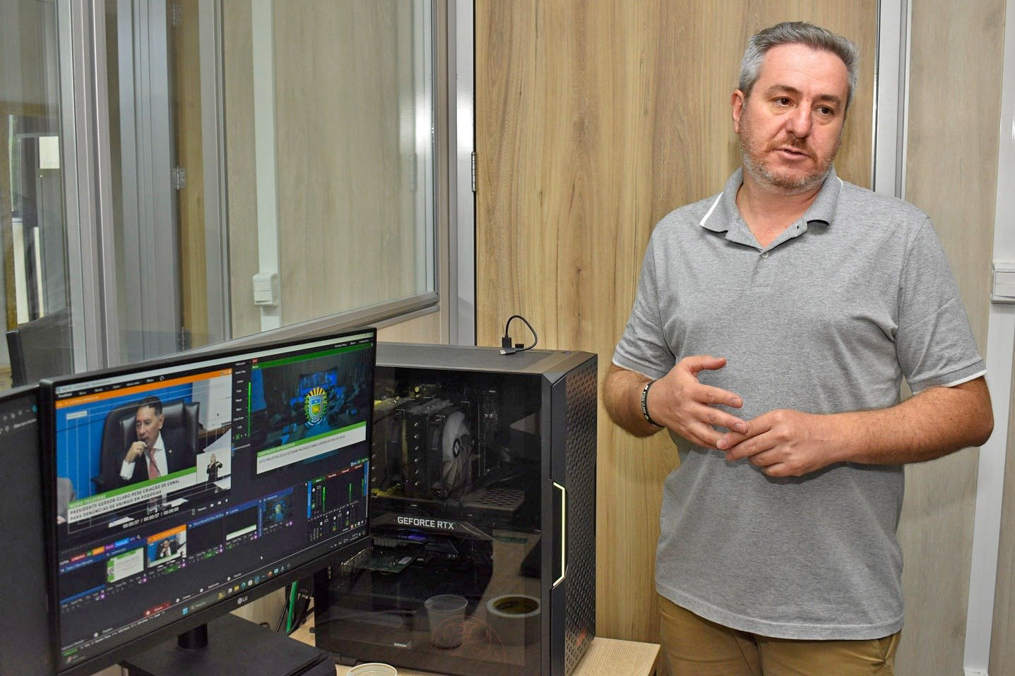 Equipamentos recém-adquiridos incrementaram o funcionamento da TV Assembleia de Mato Grosso do Sul. “Agora estamos inovando, está sendo instalado lá na ilha de edição um equipamento que vai possibilitar a transmissão de quatro eventos simultâneos, ou seja, um avanço, algo que a gente já batalhava há um tempo para ter. Antes só transmitíamos um evento, conseguimos fazer uns ajustes e ampliamos para dois, agora serão até quatro eventos simultâneos, padrão de transmissão que conhecemos na TV Senado, eles fazem oito transmissões ao mesmo tempo. Conseguiremoos então transmitir quatro eventos pelas redes sociais, abrangendo o Facebook e as mídias sociais, que serão conectadas junto às transmissões, o YouTube, e a TV fazendo a transmissão, porque a gente não consegue fazer aquele mosaico de várias transmissões para as pessoas escolherem, ainda”, considerou Alessandro Perin.