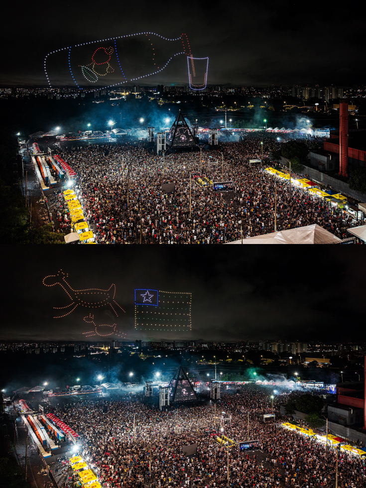 … Outro destaque foi o show de drones, que desenhou no céu símbolos da identidade piauiense, como a Serra da Capivara, a Pedra Furada e elementos da cultura local. A apresentação trouxe ainda momentos emocionantes, com homenagens ao estado e reflexões sobre a força e a beleza do sertão.
