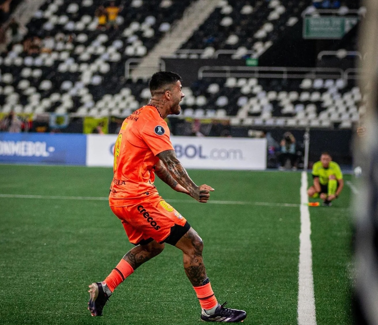 O Botafogo iniciou bem o primeiro tempo no Nilton Santos. A equipe entrou em campo pressionando a saída de bola do Barcelona-EQU e explorando os espaços pelas laterais do campo.