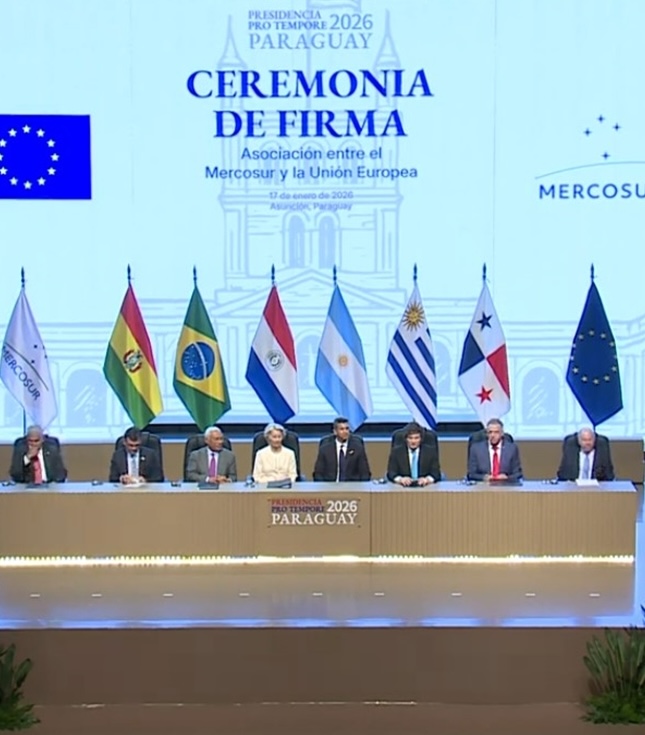 Anfitrião do evento, o presidente do Paraguai, Santiago Peña, destacou o pragmatismo diplomático necessário para superar 26 anos de impasses. “Estamos diante de um dia verdadeiramente histórico, muito esperado por nossos povos, [capaz de] unir dois dos mais importantes mercados globais, e que demonstra que o caminho do diálogo, da cooperação e da fraternidade é o único caminho”, ressaltou Peña.