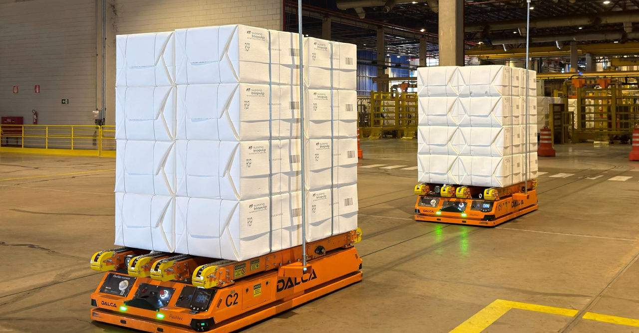 Com a tecnologia, os fardos são retirados diretamente da linha de produção e transportados até pontos específicos do armazém sem necessidade de manuseio manual. Nesta primeira fase, quatro robôs estão em operação e atendem cerca de um terço da produção da unidade. A expectativa é ampliar gradualmente o uso da solução até alcançar 100% da produção, além de avaliar sua adoção em outras unidades da companhia.